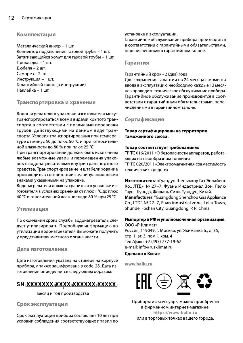 Данная инструкция на русском языке предназначена для водонагревателя Ballu GWH 10 Fiery, описывает принцип работы и основные моменты эксплуатации устройства. Перед первым включением рекомендуется внимательно изучить данное руководство.