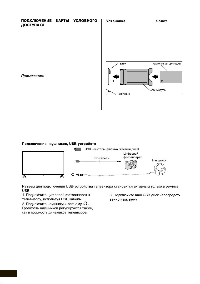 Прежде чем вставить/извлечь CAM-модуль, убедитесь, что телевизор выключен. Затем