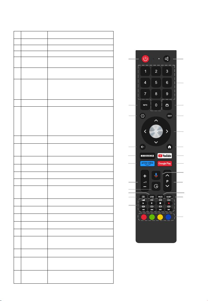Описание клавиш пульта ДУ приводится в таблице ниже: