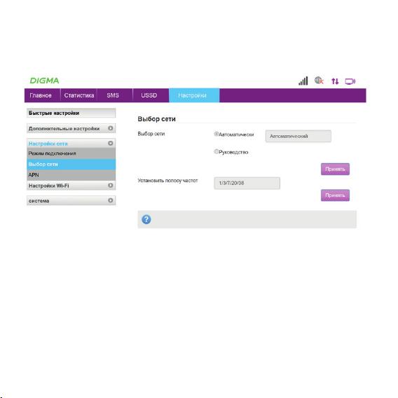 В данном разделе можно настроить параметры подключения Wi-Fi, такие как режим