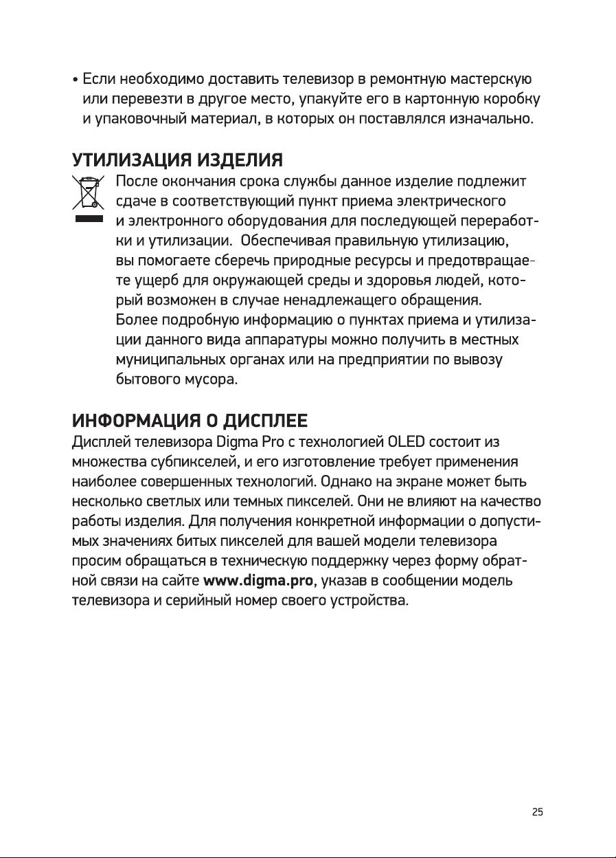 Данная инструкция на русском языке предназначена для телевизора Digma Pro OLED 65M, описывает принцип работы и основные моменты эксплуатации устройства. Перед первым включением рекомендуется внимательно изучить данное руководство.