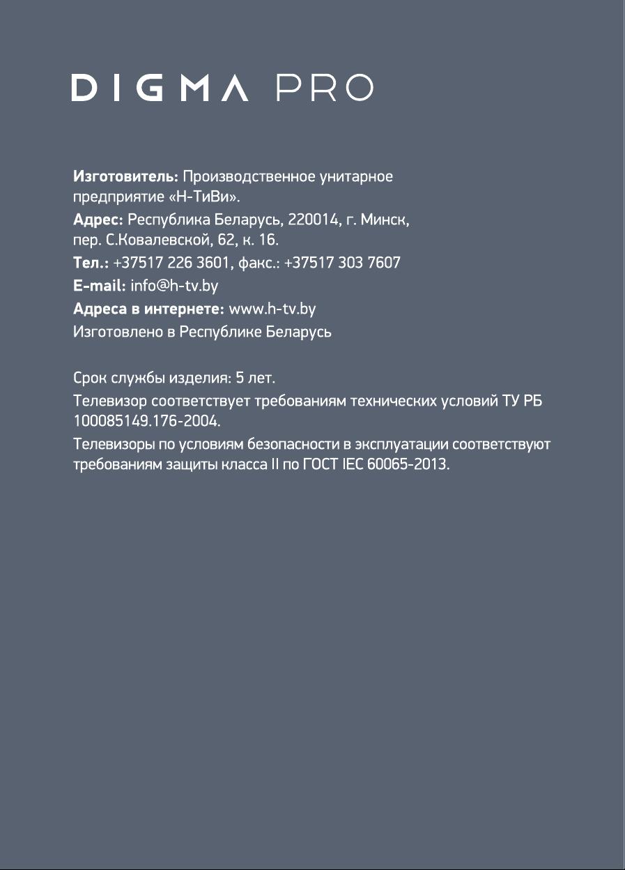 Данная инструкция на русском языке предназначена для телевизора Digma Pro QLED 43L, описывает принцип работы и основные моменты эксплуатации устройства. Перед первым включением рекомендуется внимательно изучить данное руководство.