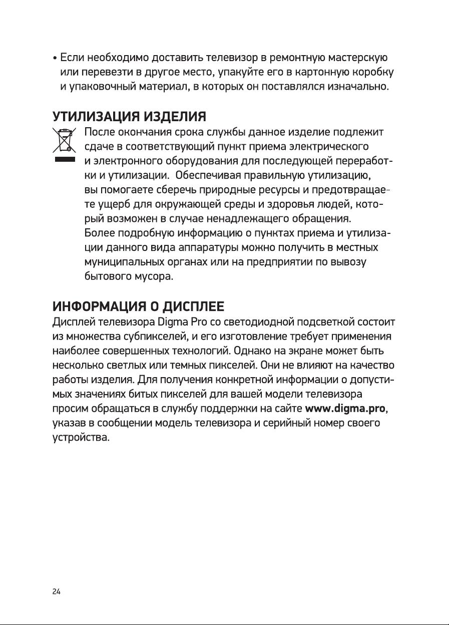 Данная инструкция на русском языке предназначена для телевизора Digma Pro QLED 65L, описывает принцип работы и основные моменты эксплуатации устройства. Перед первым включением рекомендуется внимательно изучить данное руководство.