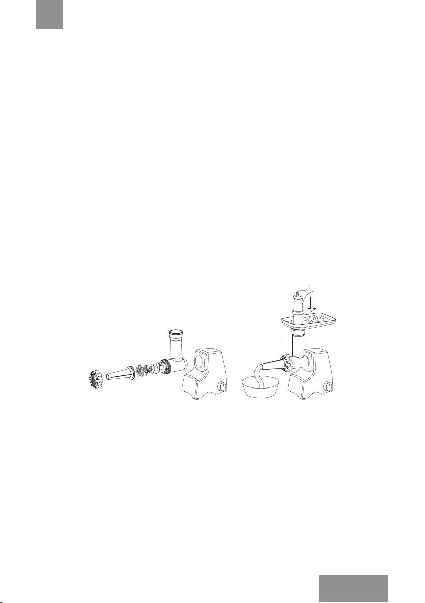 7.4.4 Поместите мясо в лоток и, используя толкатель, наполните оболочку.