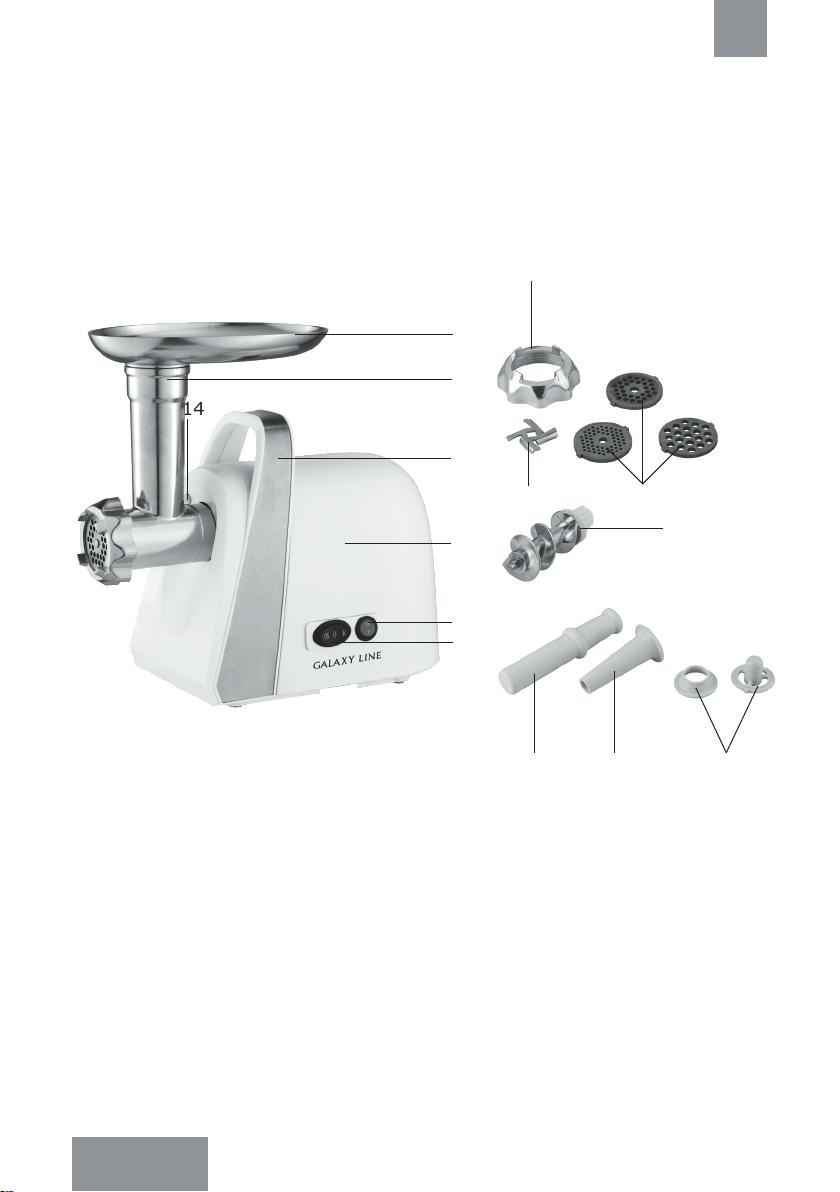 Данная инструкция на русском языке предназначена для мясорубки Galaxy Line GL2421, описывает принцип работы и основные моменты эксплуатации устройства. Перед первым включением рекомендуется внимательно изучить данное руководство.