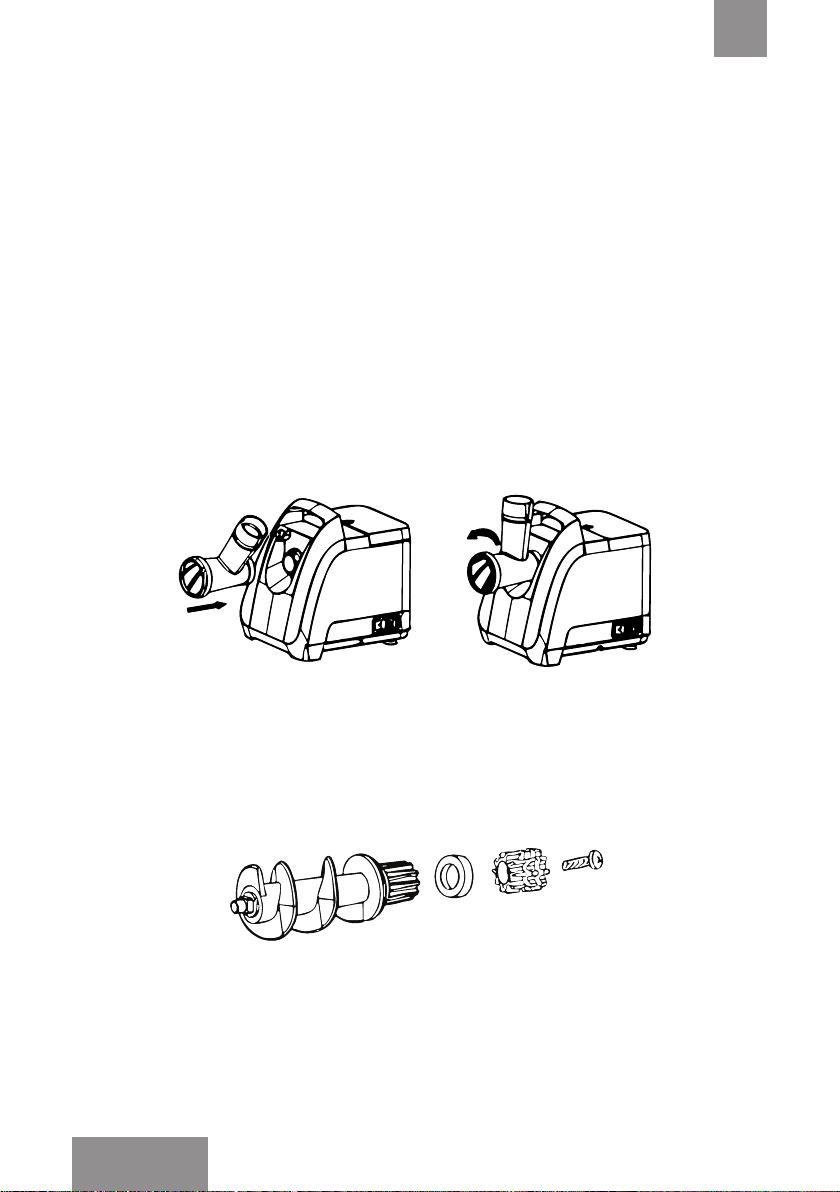 7.1.2. Поместите шнек в горловину узким концом вперёд и слегка провер-