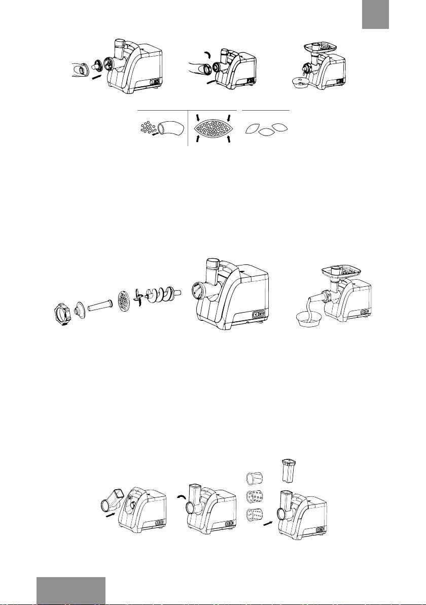 7.4.4 Поместите мясо в лоток и, используя толкатель, наполните оболочку.
