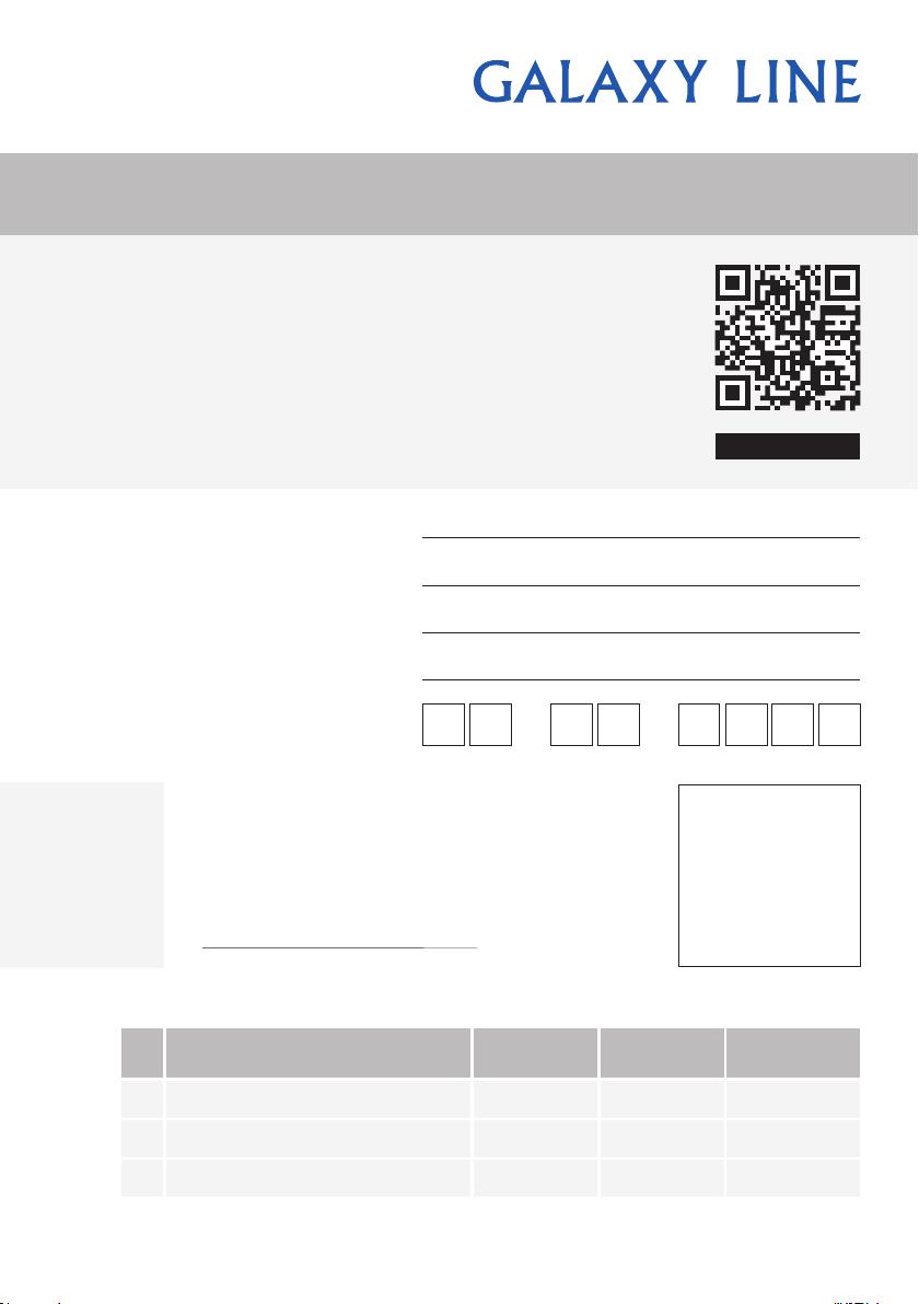 Благодарим Вас за выбор торговой марки GALAXY LINE. Мы уверены в качестве нашей
