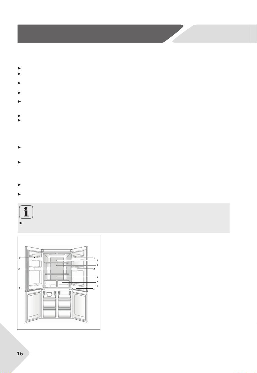 Оставьте зазор между продуктами и внутренними стенками холодильника, чтобы обеспечить