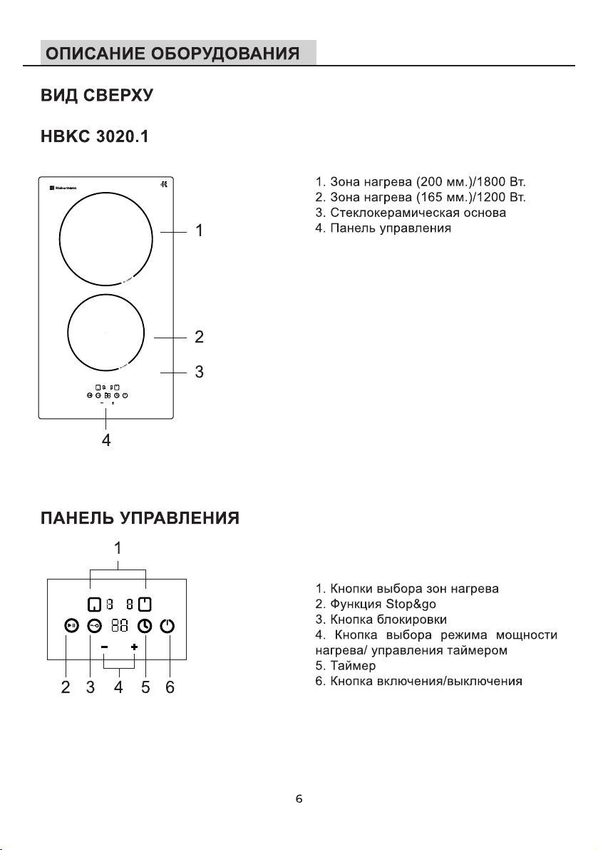 Данная инструкция на русском языке предназначена для варочной поверхности Hebermann HBKC 3020.1, описывает принцип работы и основные моменты эксплуатации устройства. Перед первым включением рекомендуется внимательно изучить данное руководство.
