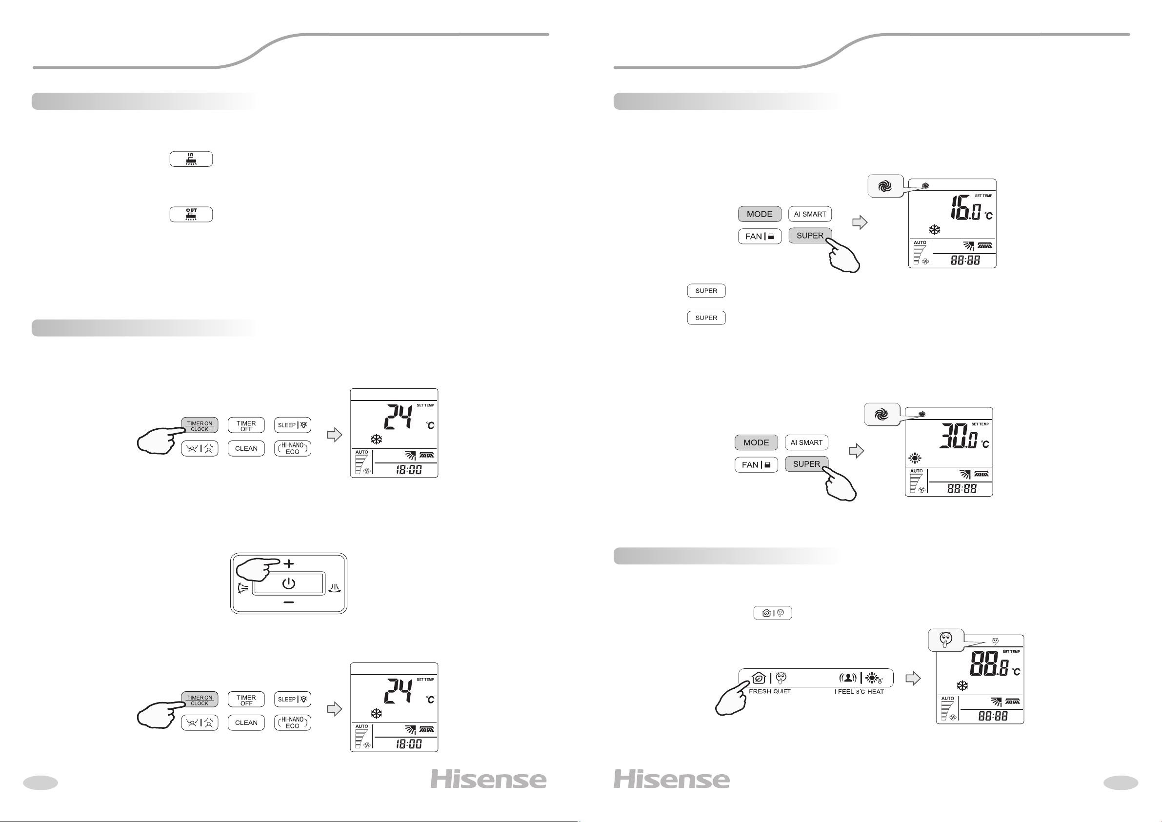 Для отмены нажмите кнопку SUPER, MODE, FAN, ON/OFF или SLEEP, экран вернется в обычный режим.