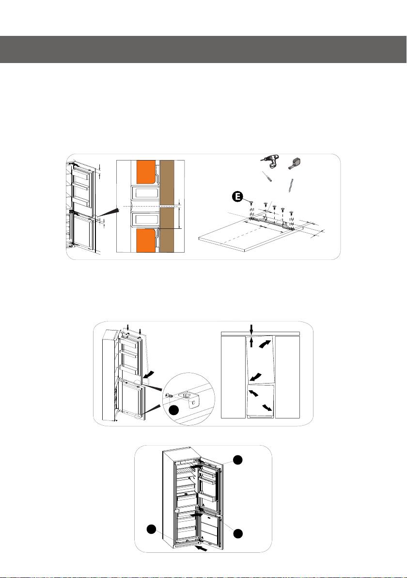 шкафа на собранную дверь холодильника. Затем отрегулируйте зазоры слева и