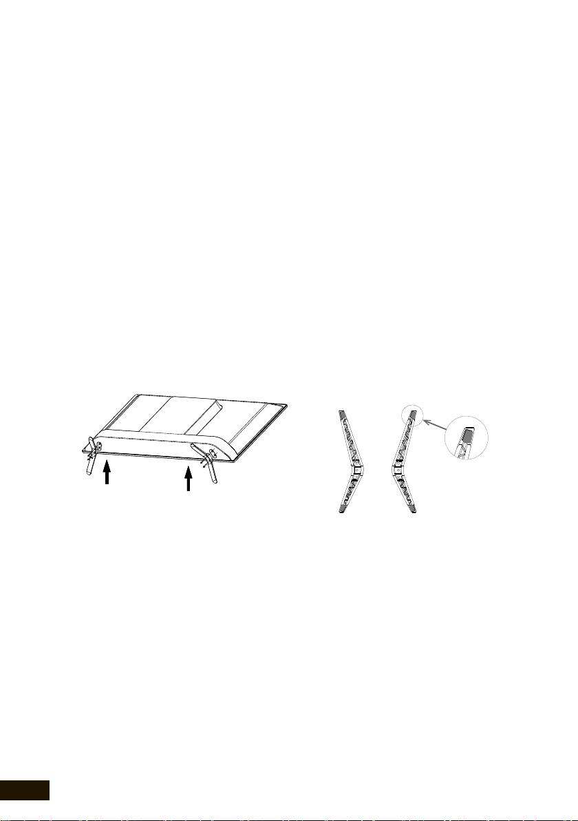 5. Вставьте ножки подставки в разъемы в нижней части телевизора.