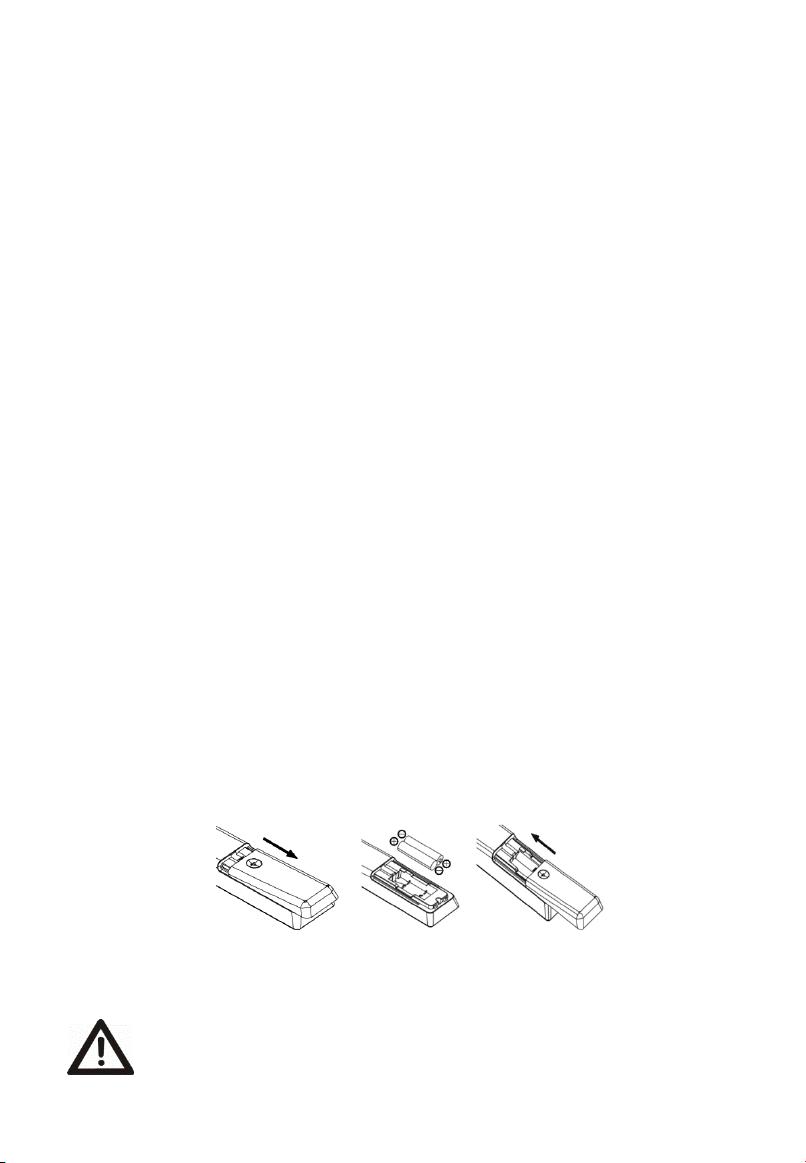 2. Вставьте батарейки в пульт ДУ. Убедитесь, что полярность соблюдена в соответствии с