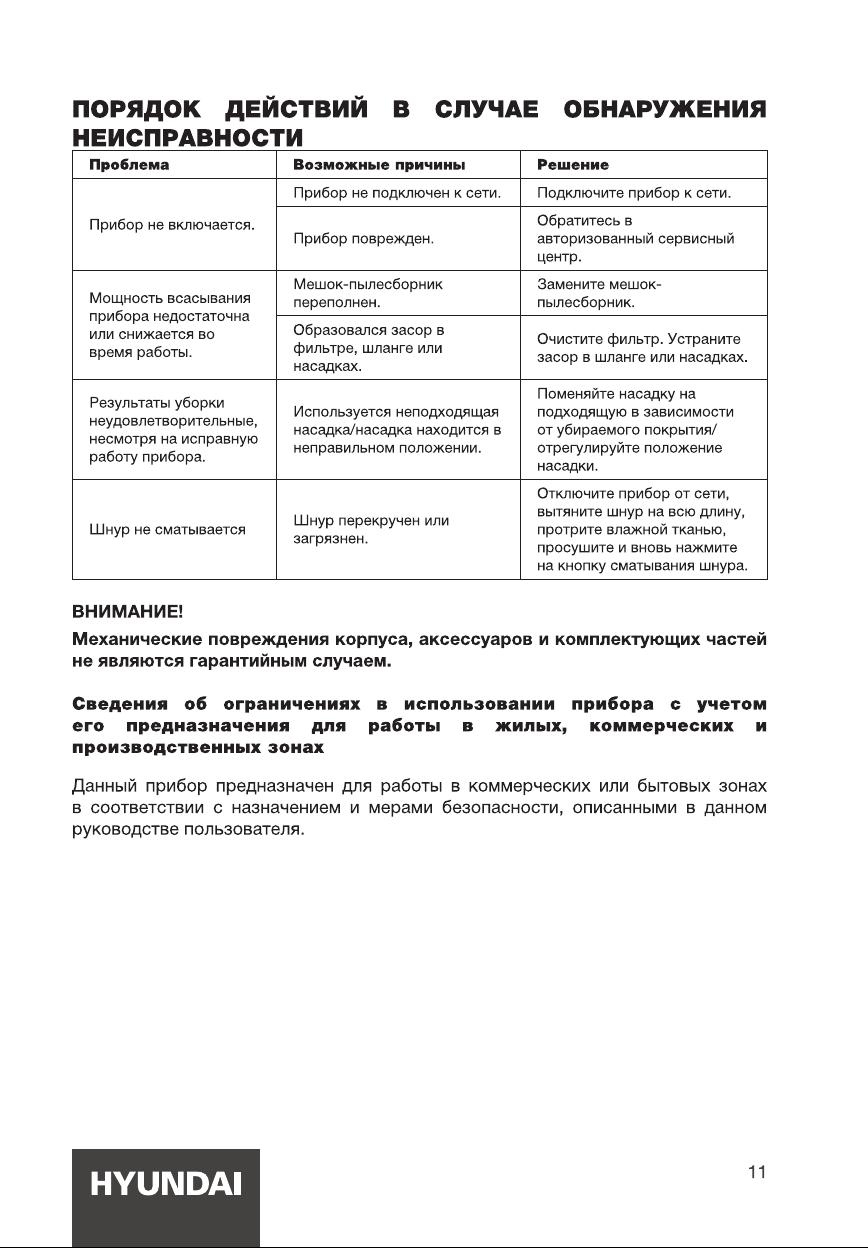 Данная инструкция на русском языке предназначена для пылесоса Hyundai HYV-B4055, описывает принцип работы и основные моменты эксплуатации устройства. Перед первым включением рекомендуется внимательно изучить данное руководство.