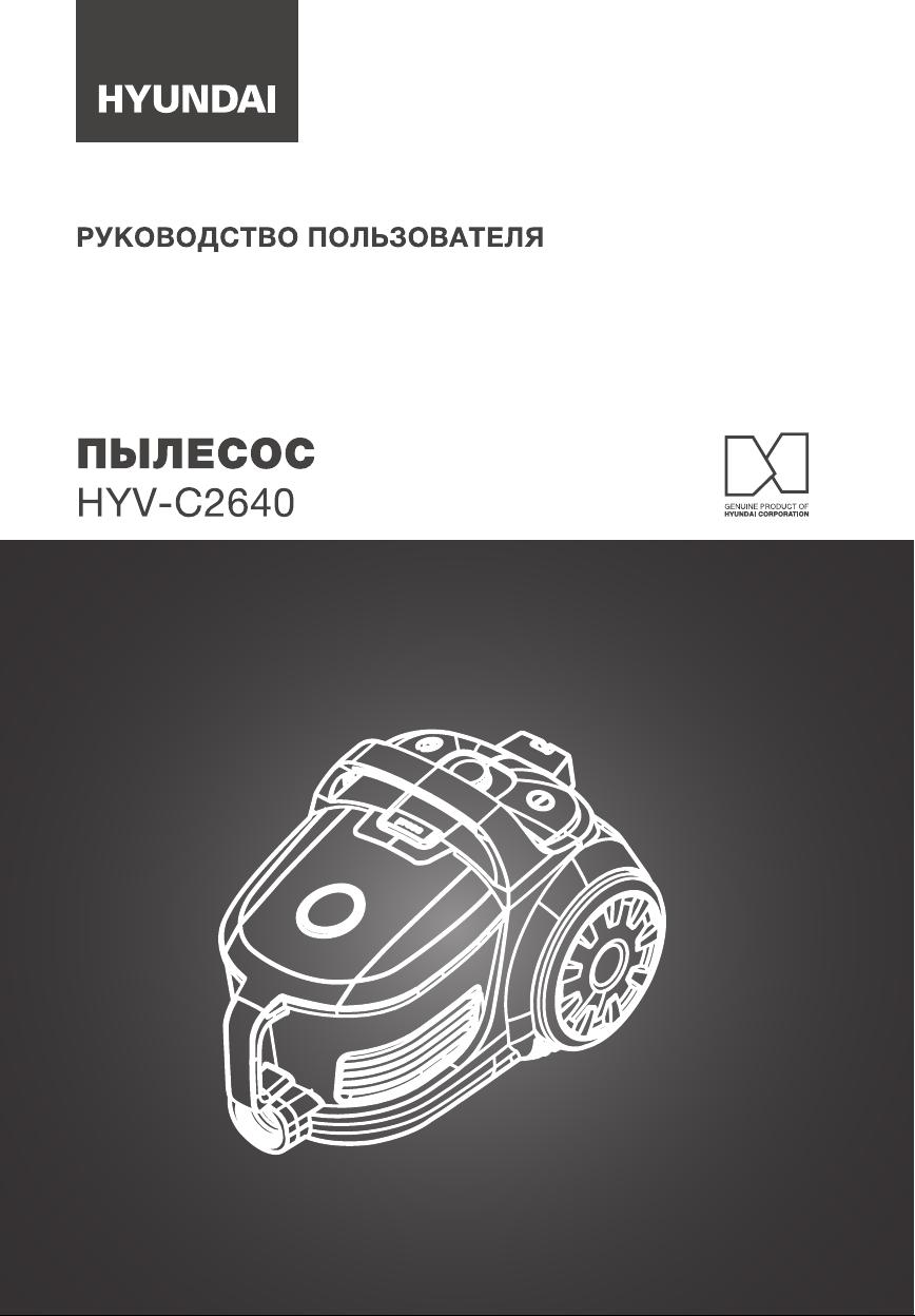 Данная инструкция на русском языке предназначена для пылесоса Hyundai HYV-C2640, описывает принцип работы и основные моменты эксплуатации устройства. Перед первым включением рекомендуется внимательно изучить данное руководство.