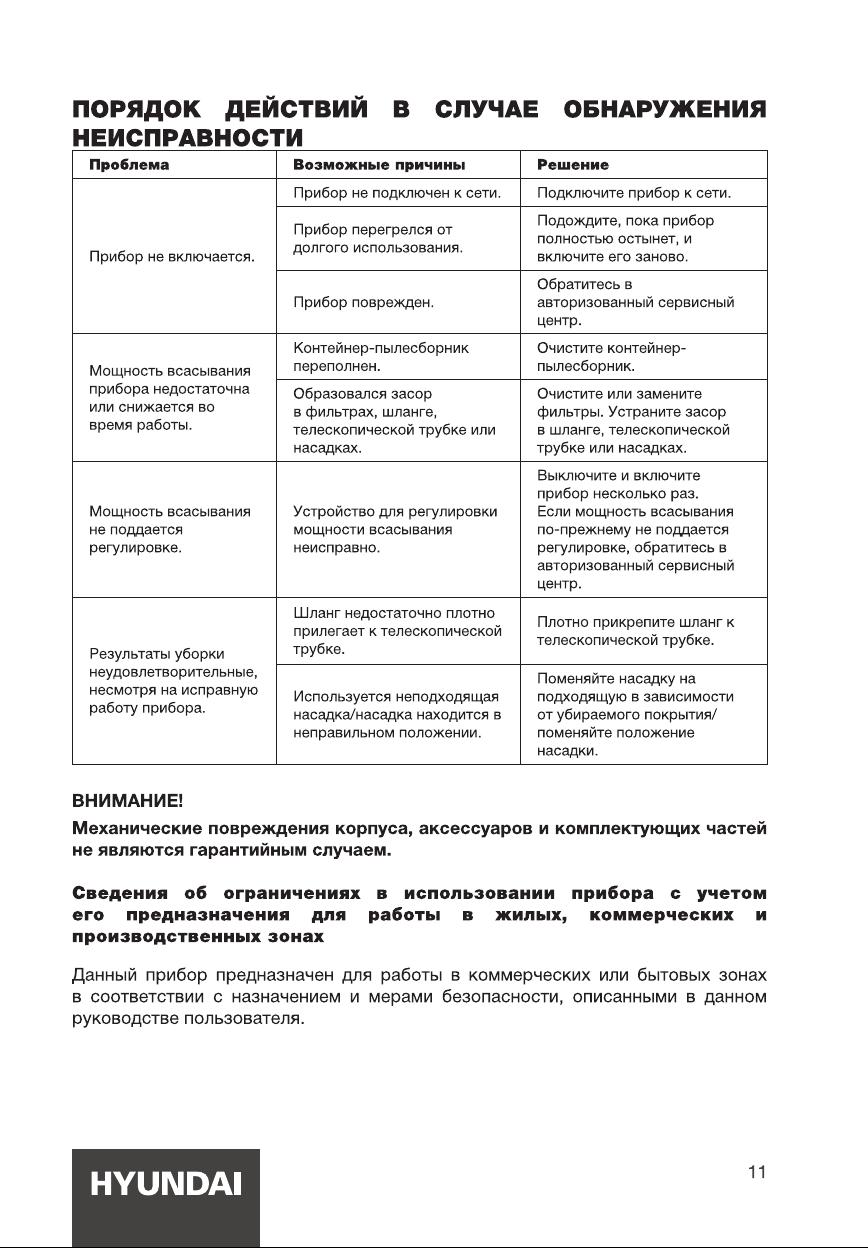 Данная инструкция на русском языке предназначена для пылесоса Hyundai HYV-C2640, описывает принцип работы и основные моменты эксплуатации устройства. Перед первым включением рекомендуется внимательно изучить данное руководство.