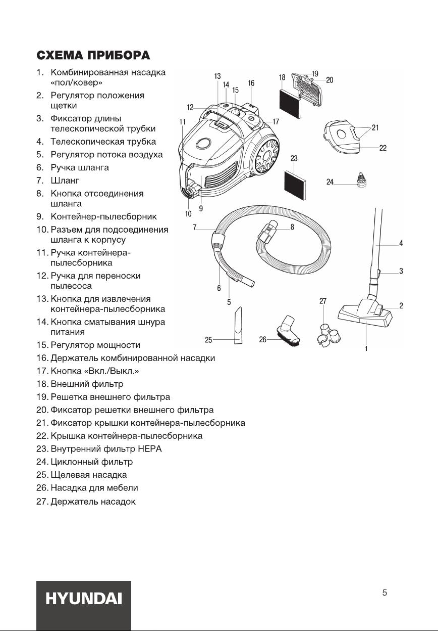 Данная инструкция на русском языке предназначена для пылесоса Hyundai HYV-C2640, описывает принцип работы и основные моменты эксплуатации устройства. Перед первым включением рекомендуется внимательно изучить данное руководство.