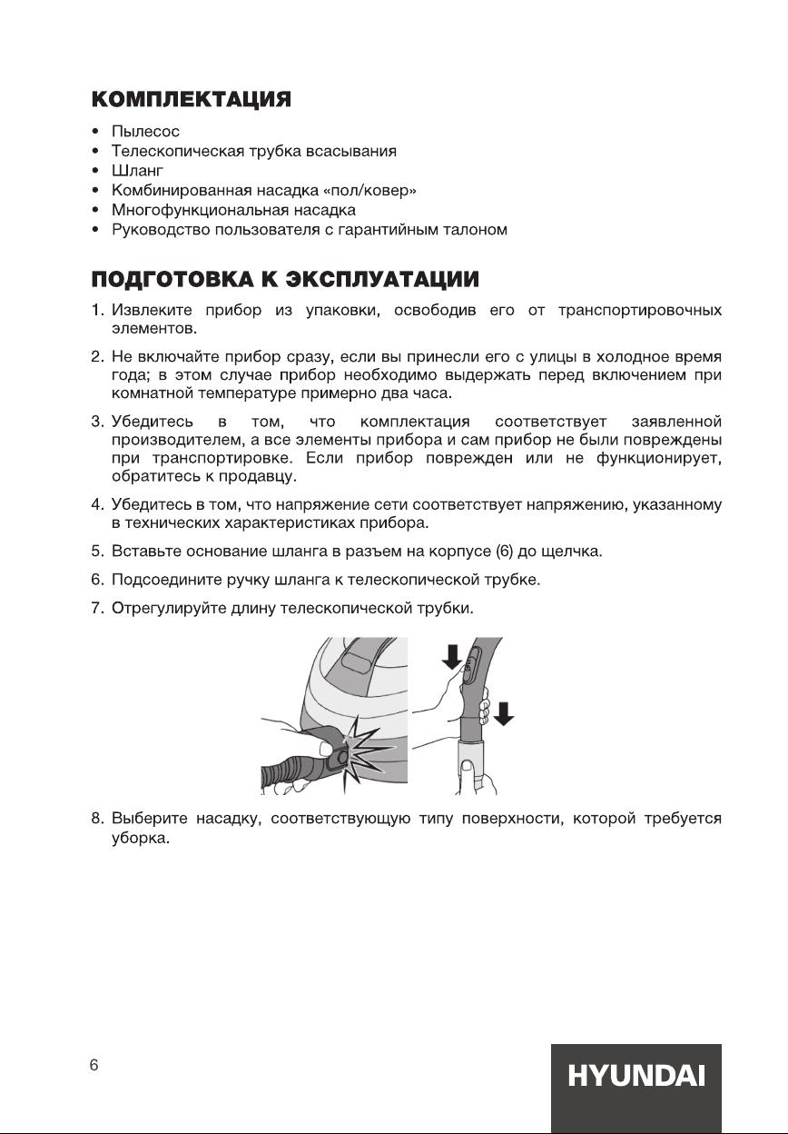 Данная инструкция на русском языке предназначена для пылесоса Hyundai HYV-C3075, описывает принцип работы и основные моменты эксплуатации устройства. Перед первым включением рекомендуется внимательно изучить данное руководство.