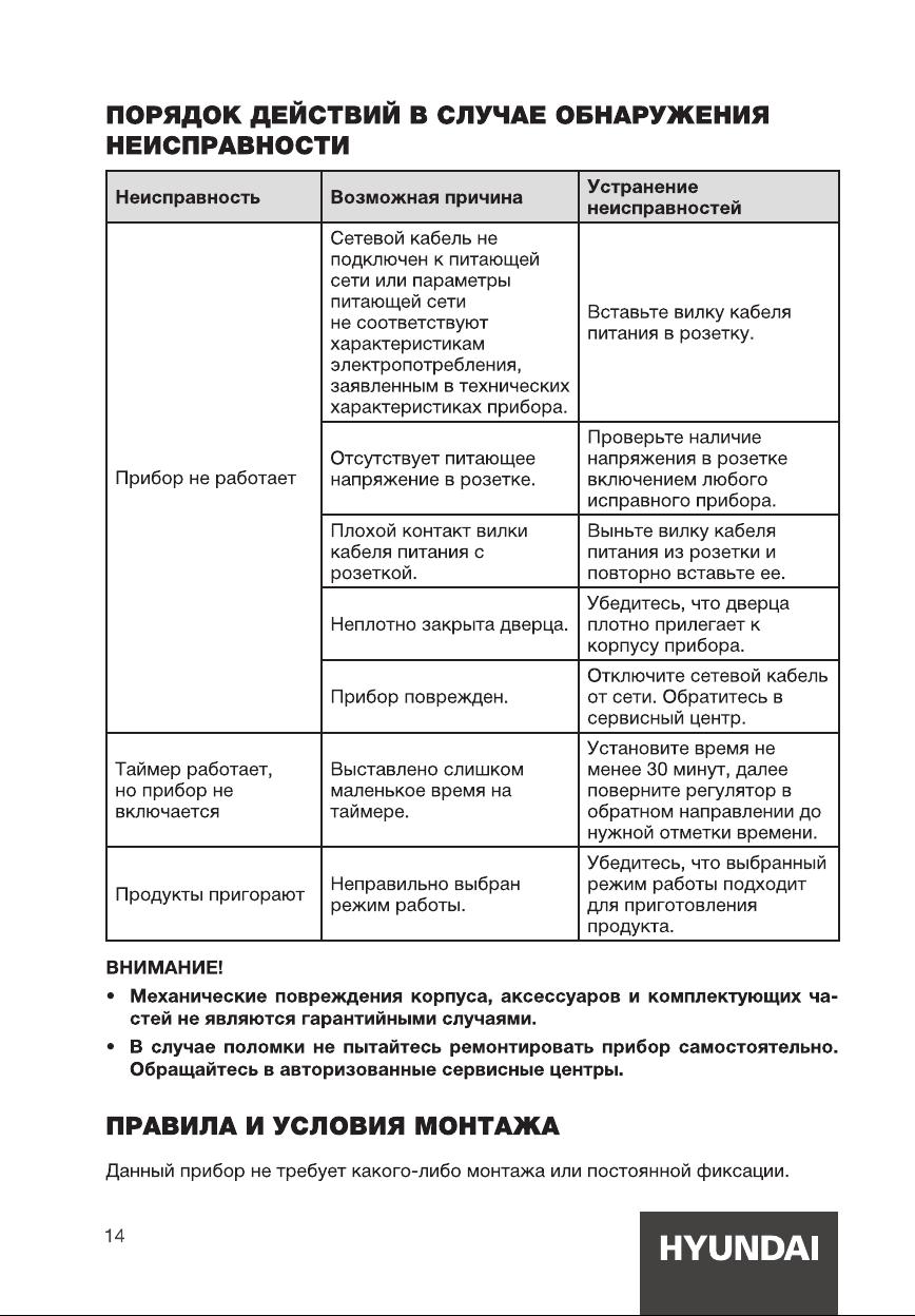 Данная инструкция на русском языке предназначена для печи Hyundai MIO-HY096, описывает принцип работы и основные моменты эксплуатации устройства. Перед первым включением рекомендуется внимательно изучить данное руководство.