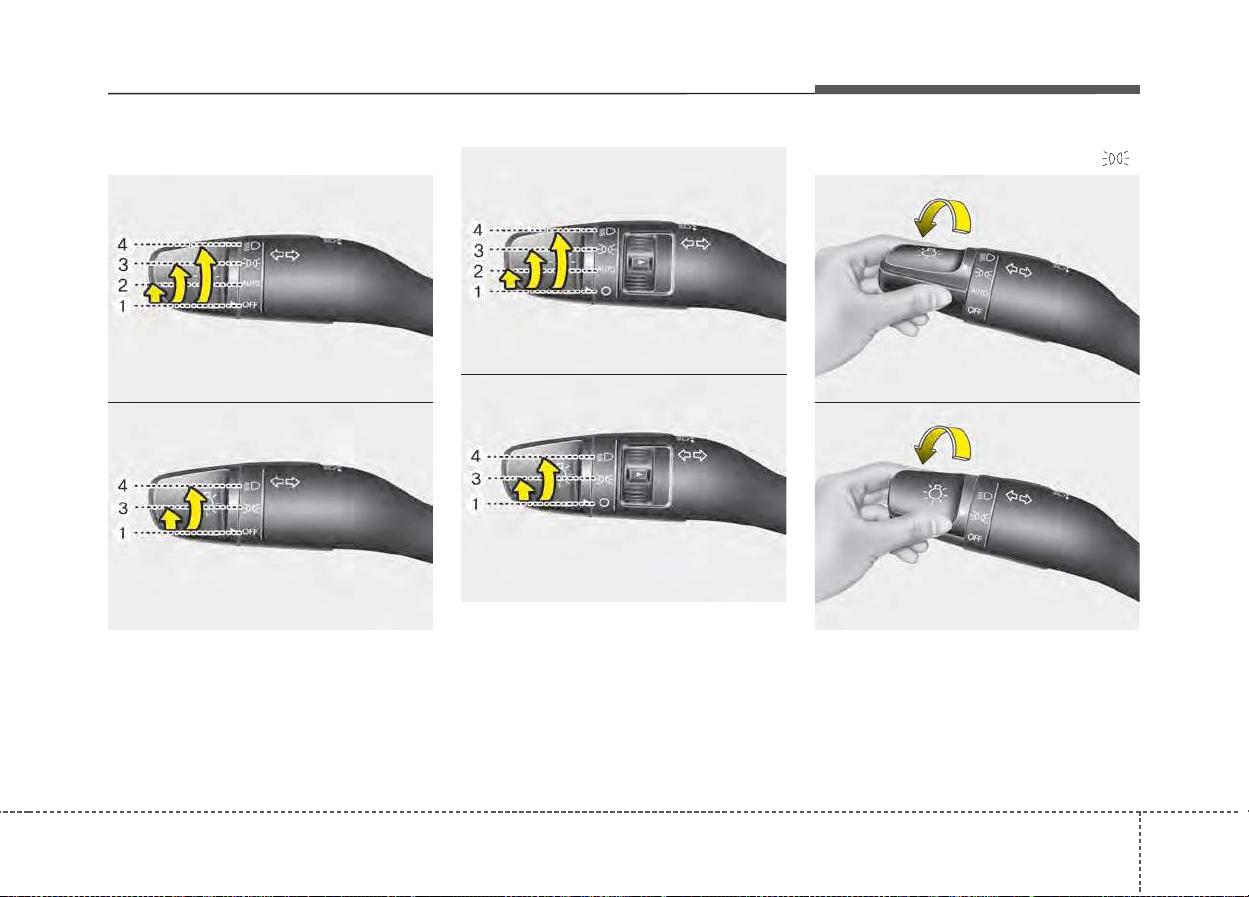 положения фар и габаритных огней.