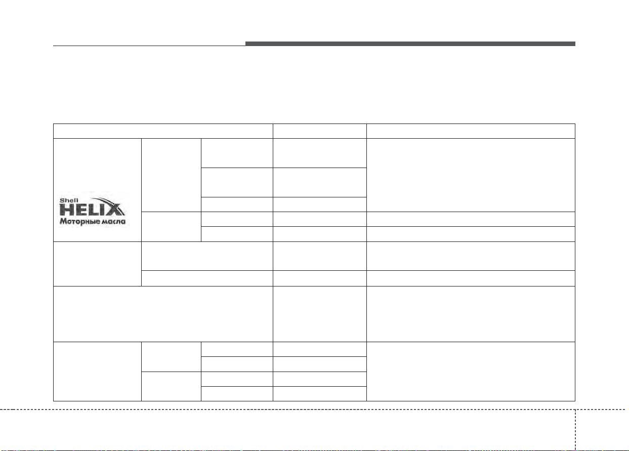 На вашем автомобиле рекомендуется использовать следующие смазочные материалы и жидкости: