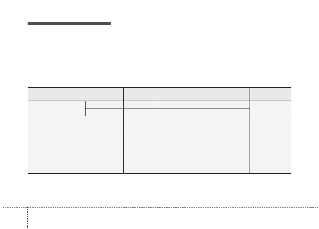 В ниже расположенной таблице указана соответствующая периодичность технического обслуживания.