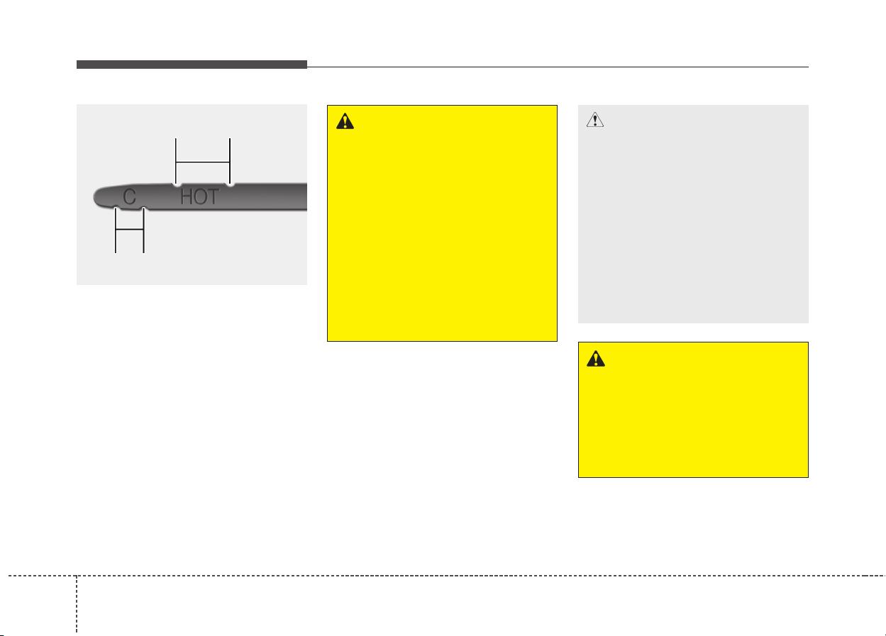 щупа “HOT” (горячая). Если уровень