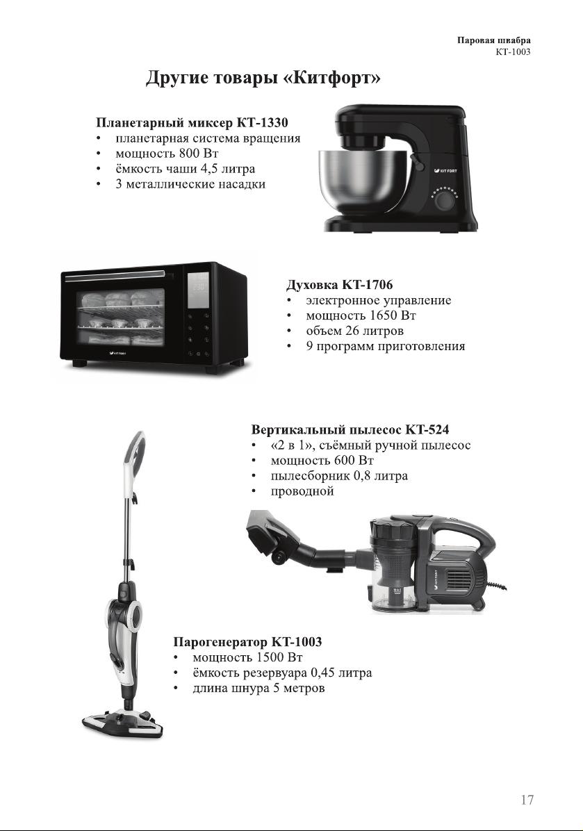 Данная инструкция на русском языке предназначена для паровой швабры Kitfort KT-1003, описывает принцип работы и основные моменты эксплуатации устройства. Перед первым включением рекомендуется внимательно изучить данное руководство.
