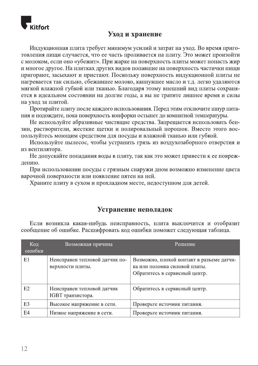 Данная инструкция на русском языке предназначена для плиты Kitfort KT-108, описывает принцип работы и основные моменты эксплуатации устройства. Перед первым включением рекомендуется внимательно изучить данное руководство.