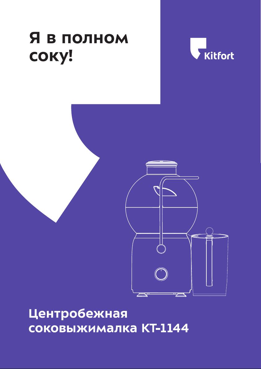Данная инструкция на русском языке предназначена для соковыжималки Kitfort KT-1144, описывает принцип работы и основные моменты эксплуатации устройства. Перед первым включением рекомендуется внимательно изучить данное руководство.