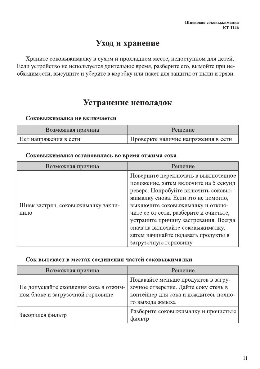 Данная инструкция на русском языке предназначена для соковыжималки Kitfort KT-1146, описывает принцип работы и основные моменты эксплуатации устройства. Перед первым включением рекомендуется внимательно изучить данное руководство.