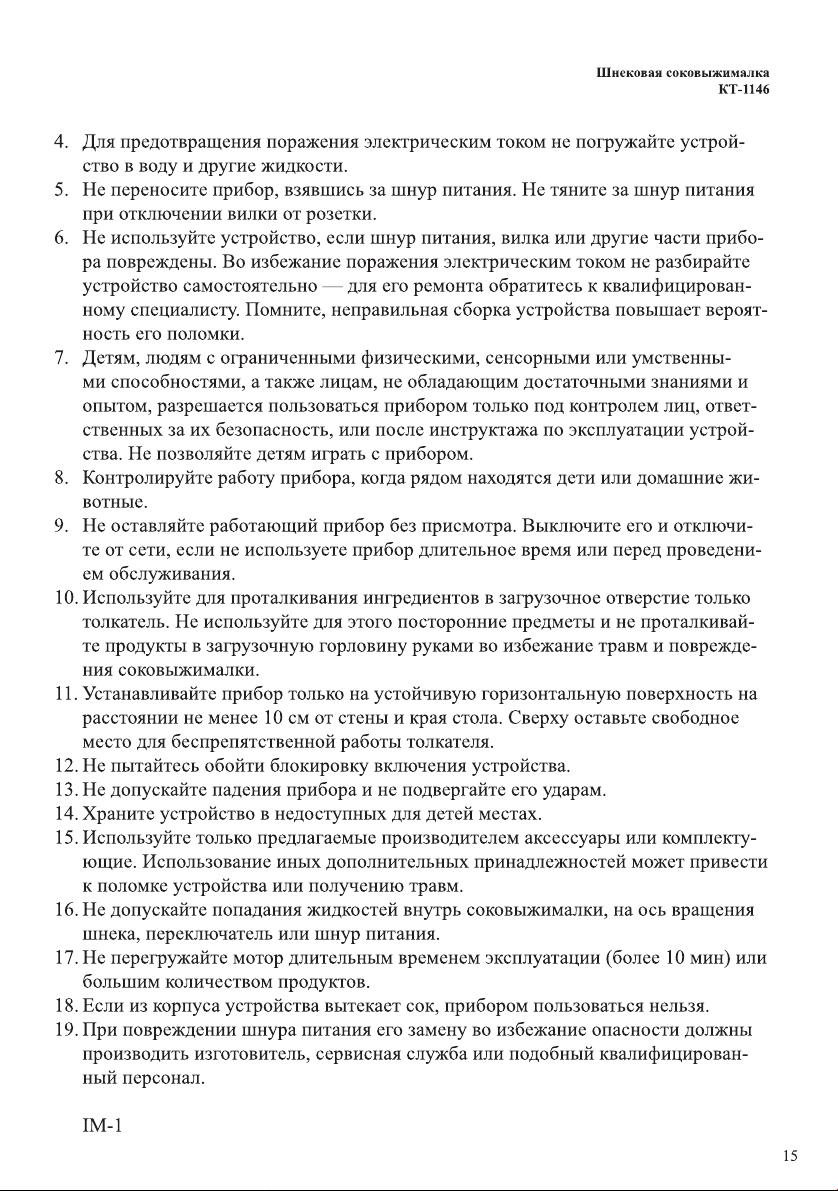 Данная инструкция на русском языке предназначена для соковыжималки Kitfort KT-1146, описывает принцип работы и основные моменты эксплуатации устройства. Перед первым включением рекомендуется внимательно изучить данное руководство.