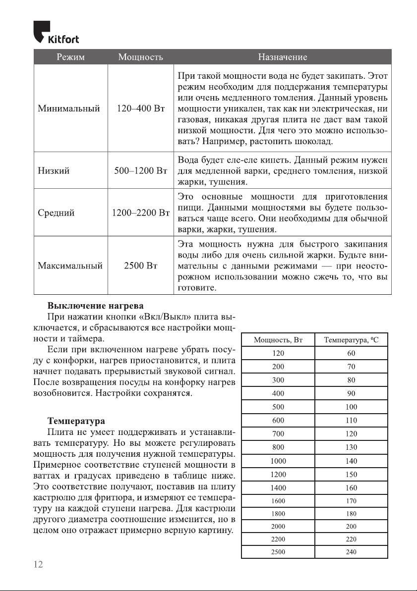 Данная инструкция на русском языке предназначена для плиты Kitfort KT-121, описывает принцип работы и основные моменты эксплуатации устройства. Перед первым включением рекомендуется внимательно изучить данное руководство.