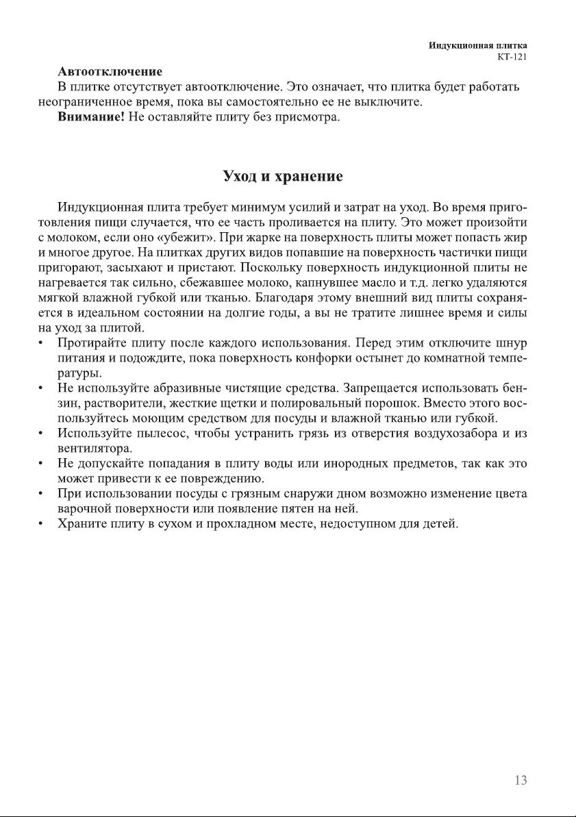 Данная инструкция на русском языке предназначена для плиты Kitfort KT-121, описывает принцип работы и основные моменты эксплуатации устройства. Перед первым включением рекомендуется внимательно изучить данное руководство.