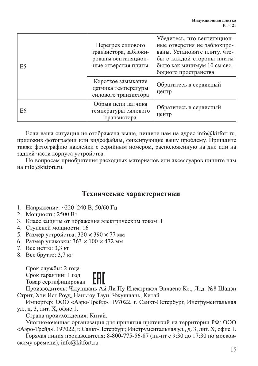 Данная инструкция на русском языке предназначена для плиты Kitfort KT-121, описывает принцип работы и основные моменты эксплуатации устройства. Перед первым включением рекомендуется внимательно изучить данное руководство.