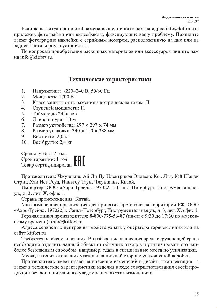 Данная инструкция на русском языке предназначена для плиты Kitfort KT-137, описывает принцип работы и основные моменты эксплуатации устройства. Перед первым включением рекомендуется внимательно изучить данное руководство.