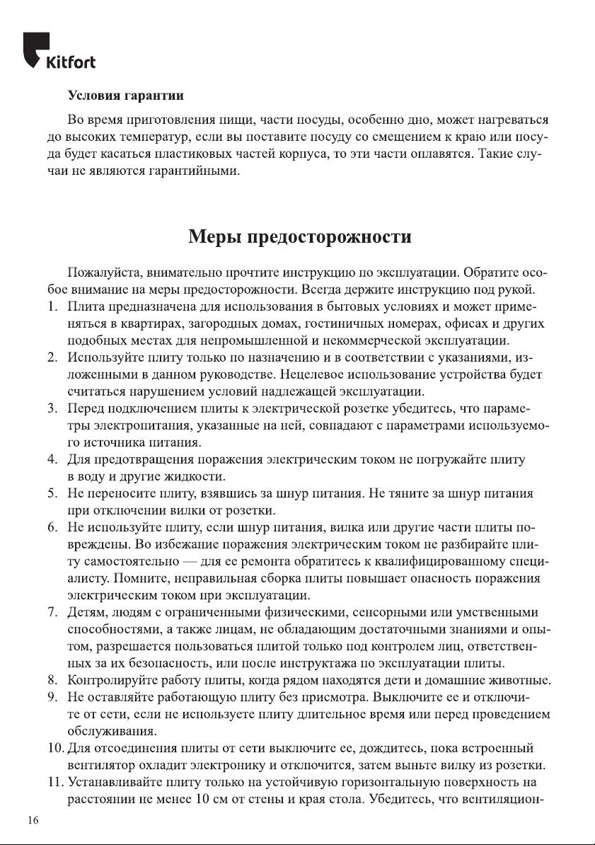 Данная инструкция на русском языке предназначена для плиты Kitfort KT-140, описывает принцип работы и основные моменты эксплуатации устройства. Перед первым включением рекомендуется внимательно изучить данное руководство.