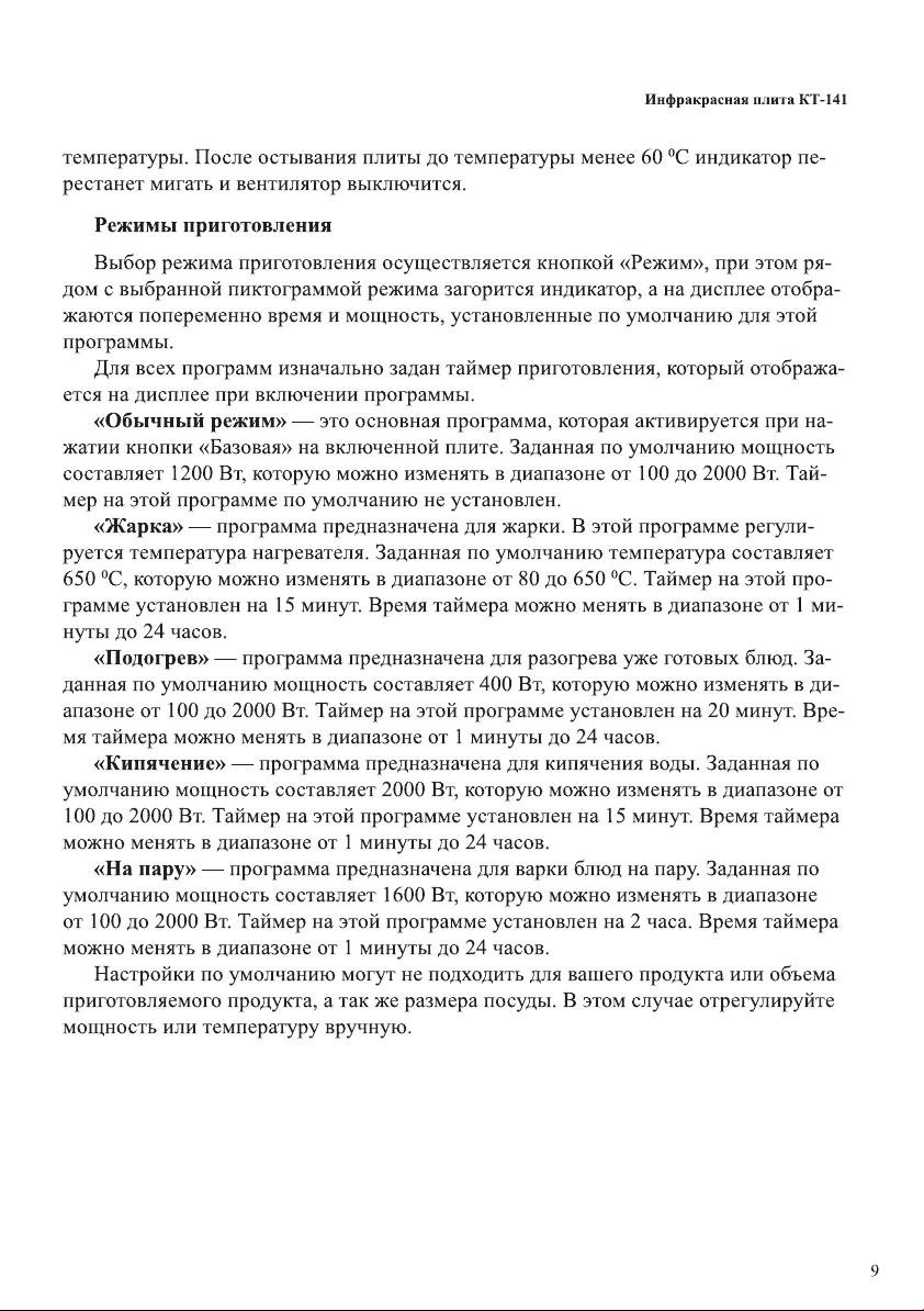 Данная инструкция на русском языке предназначена для плиты Kitfort KT-141, описывает принцип работы и основные моменты эксплуатации устройства. Перед первым включением рекомендуется внимательно изучить данное руководство.