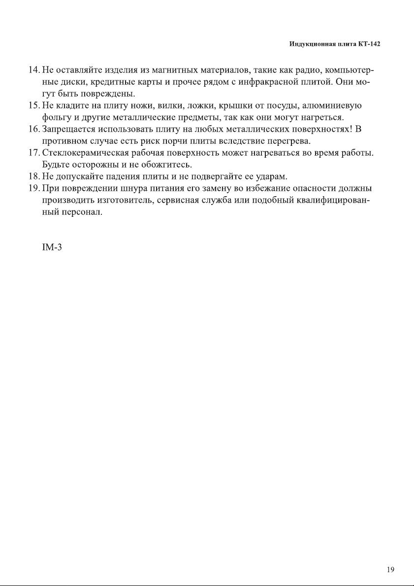 Данная инструкция на русском языке предназначена для плиты Kitfort KT-142, описывает принцип работы и основные моменты эксплуатации устройства. Перед первым включением рекомендуется внимательно изучить данное руководство.
