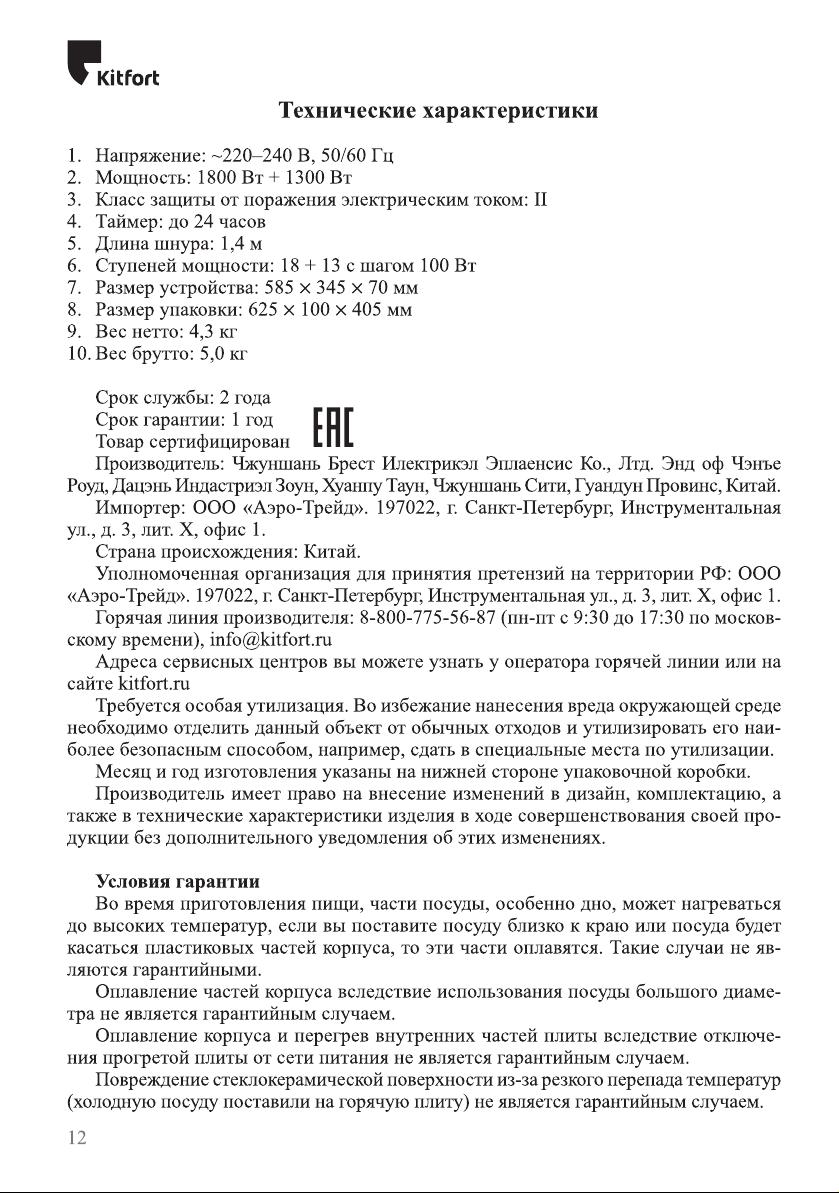 Данная инструкция на русском языке предназначена для плиты Kitfort KT-147, описывает принцип работы и основные моменты эксплуатации устройства. Перед первым включением рекомендуется внимательно изучить данное руководство.