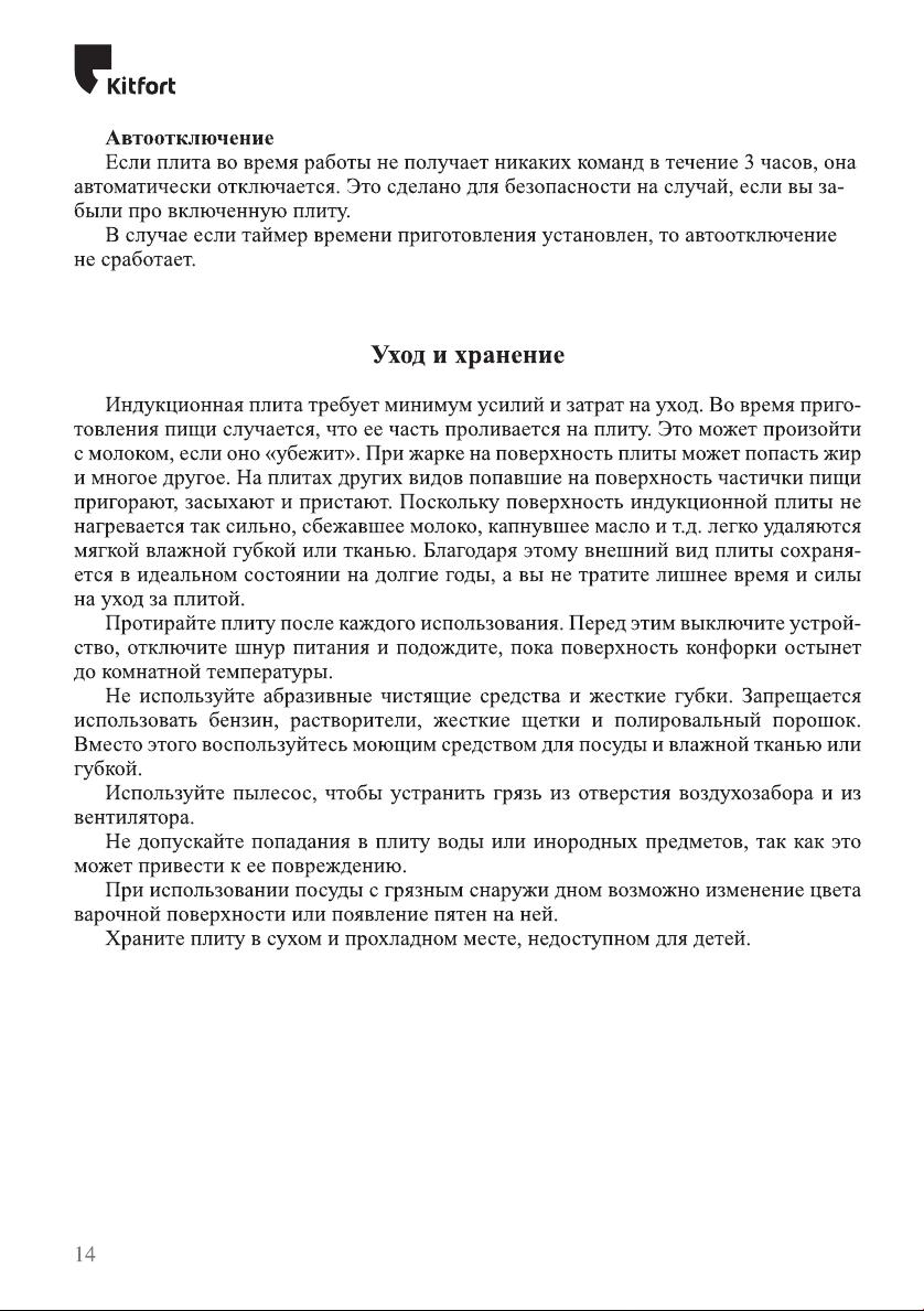 Данная инструкция на русском языке предназначена для плиты Kitfort KT-149, описывает принцип работы и основные моменты эксплуатации устройства. Перед первым включением рекомендуется внимательно изучить данное руководство.