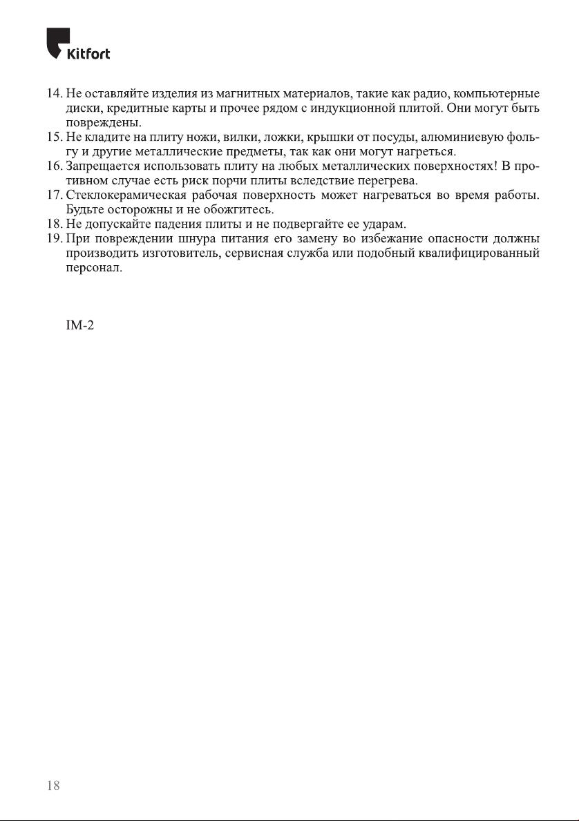 Данная инструкция на русском языке предназначена для плиты Kitfort KT-149, описывает принцип работы и основные моменты эксплуатации устройства. Перед первым включением рекомендуется внимательно изучить данное руководство.