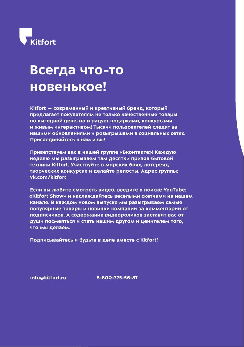 Данная инструкция на русском языке предназначена для плиты Kitfort KT-154, описывает принцип работы и основные моменты эксплуатации устройства. Перед первым включением рекомендуется внимательно изучить данное руководство.