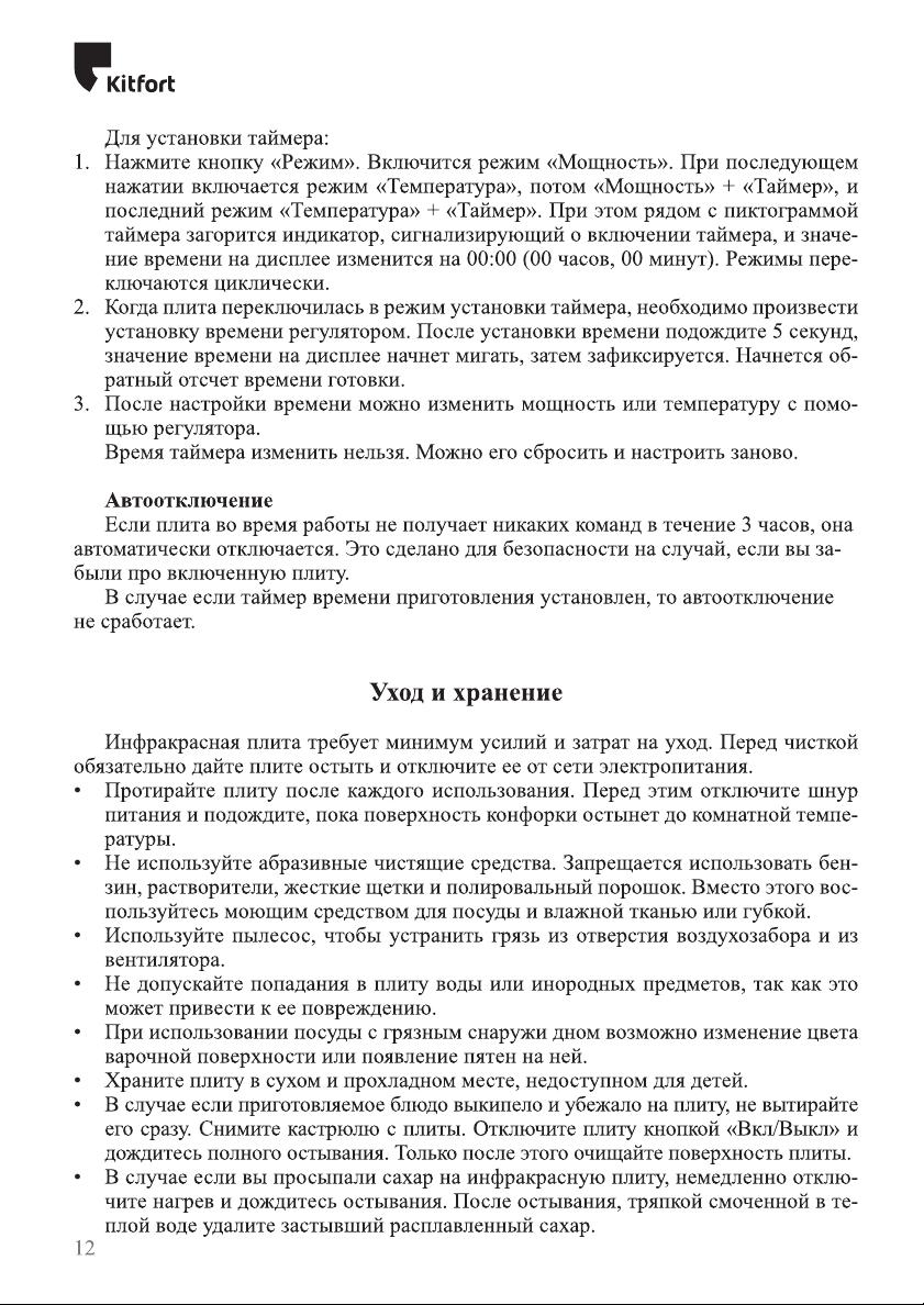 Данная инструкция на русском языке предназначена для плиты Kitfort KT-155, описывает принцип работы и основные моменты эксплуатации устройства. Перед первым включением рекомендуется внимательно изучить данное руководство.