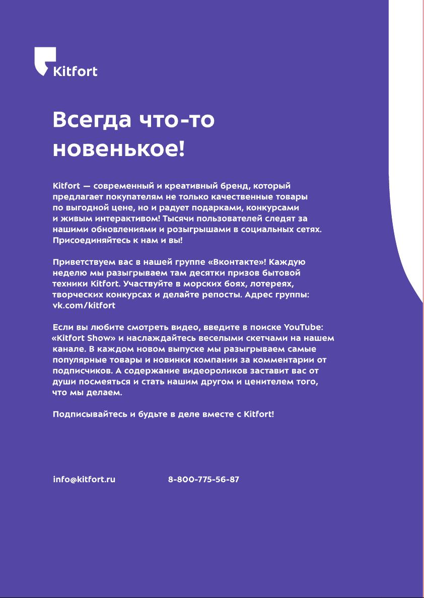 Данная инструкция на русском языке предназначена для плиты Kitfort KT-161, описывает принцип работы и основные моменты эксплуатации устройства. Перед первым включением рекомендуется внимательно изучить данное руководство.