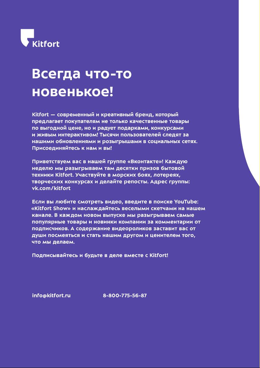 Данная инструкция на русском языке предназначена для плиты Kitfort KT-162, описывает принцип работы и основные моменты эксплуатации устройства. Перед первым включением рекомендуется внимательно изучить данное руководство.
