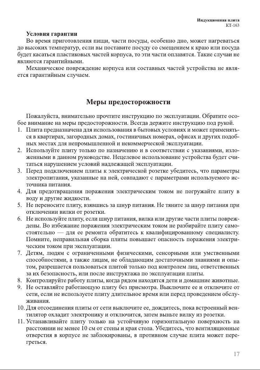 Данная инструкция на русском языке предназначена для плиты Kitfort KT-163, описывает принцип работы и основные моменты эксплуатации устройства. Перед первым включением рекомендуется внимательно изучить данное руководство.