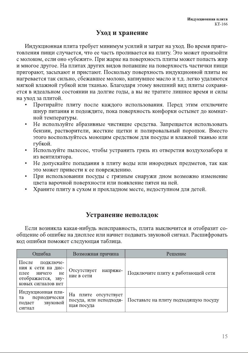 Данная инструкция на русском языке предназначена для плиты Kitfort KT-166, описывает принцип работы и основные моменты эксплуатации устройства. Перед первым включением рекомендуется внимательно изучить данное руководство.