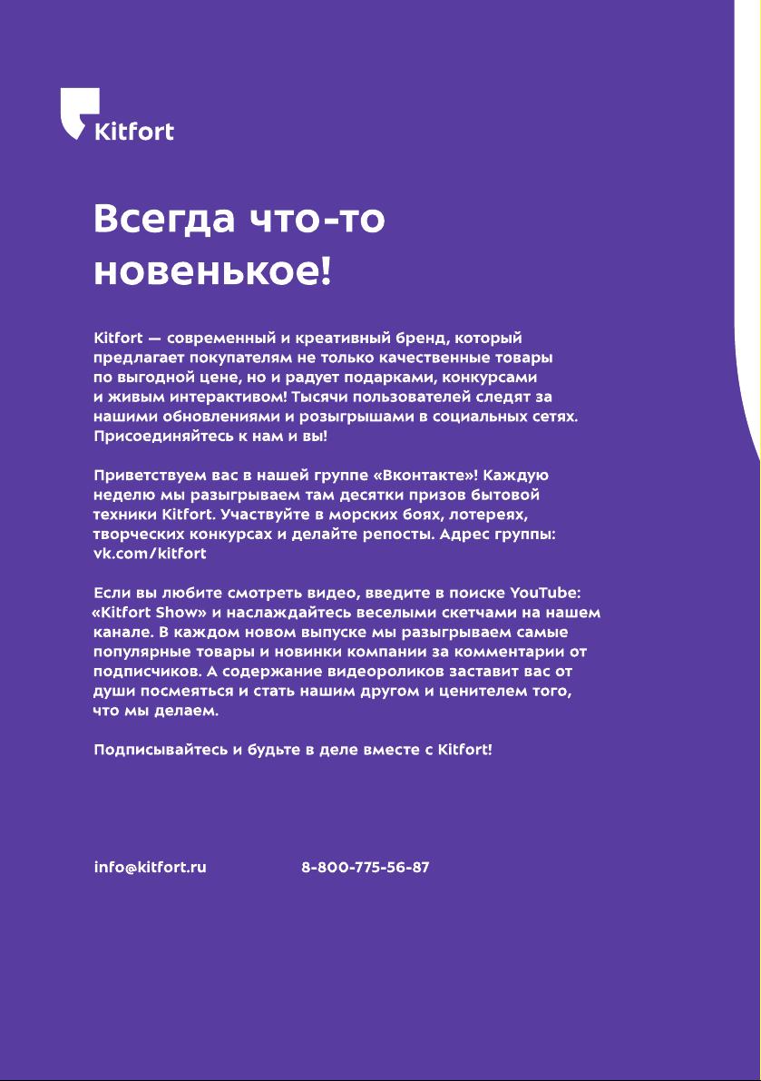 Данная инструкция на русском языке предназначена для гриля Kitfort KT-1673, описывает принцип работы и основные моменты эксплуатации устройства. Перед первым включением рекомендуется внимательно изучить данное руководство.